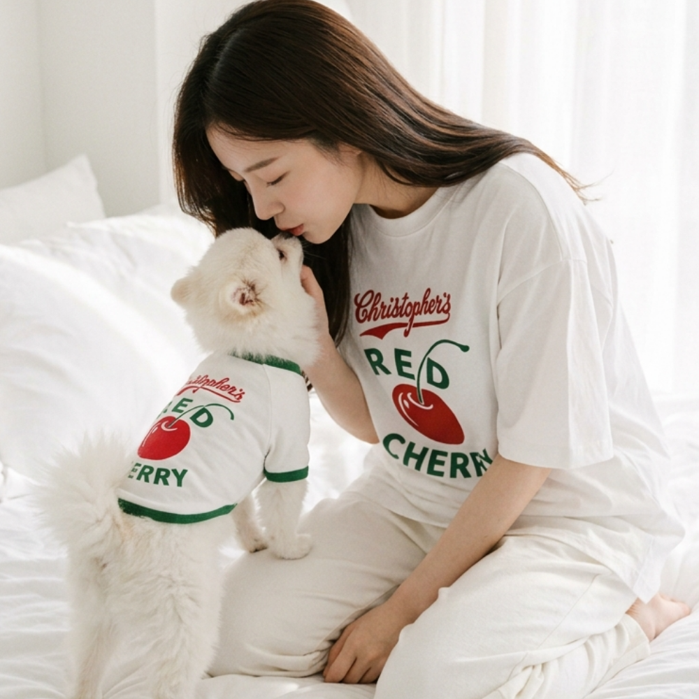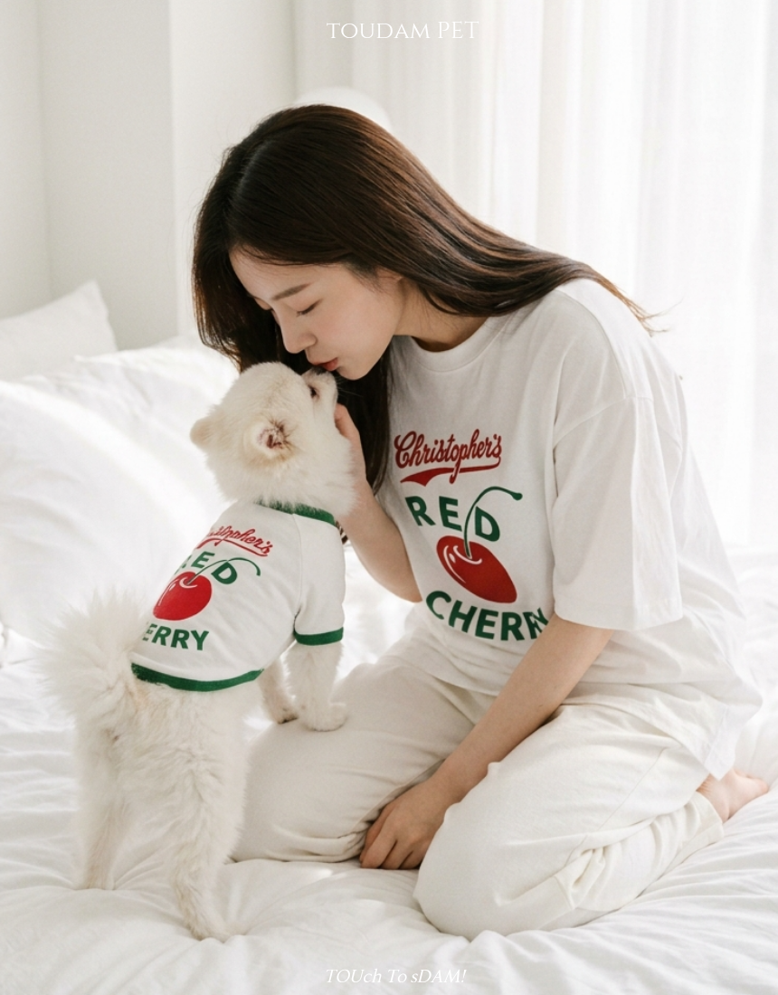 [커플룩/견주용] 너랑나랑 체리한입 커플 티셔츠 FREE