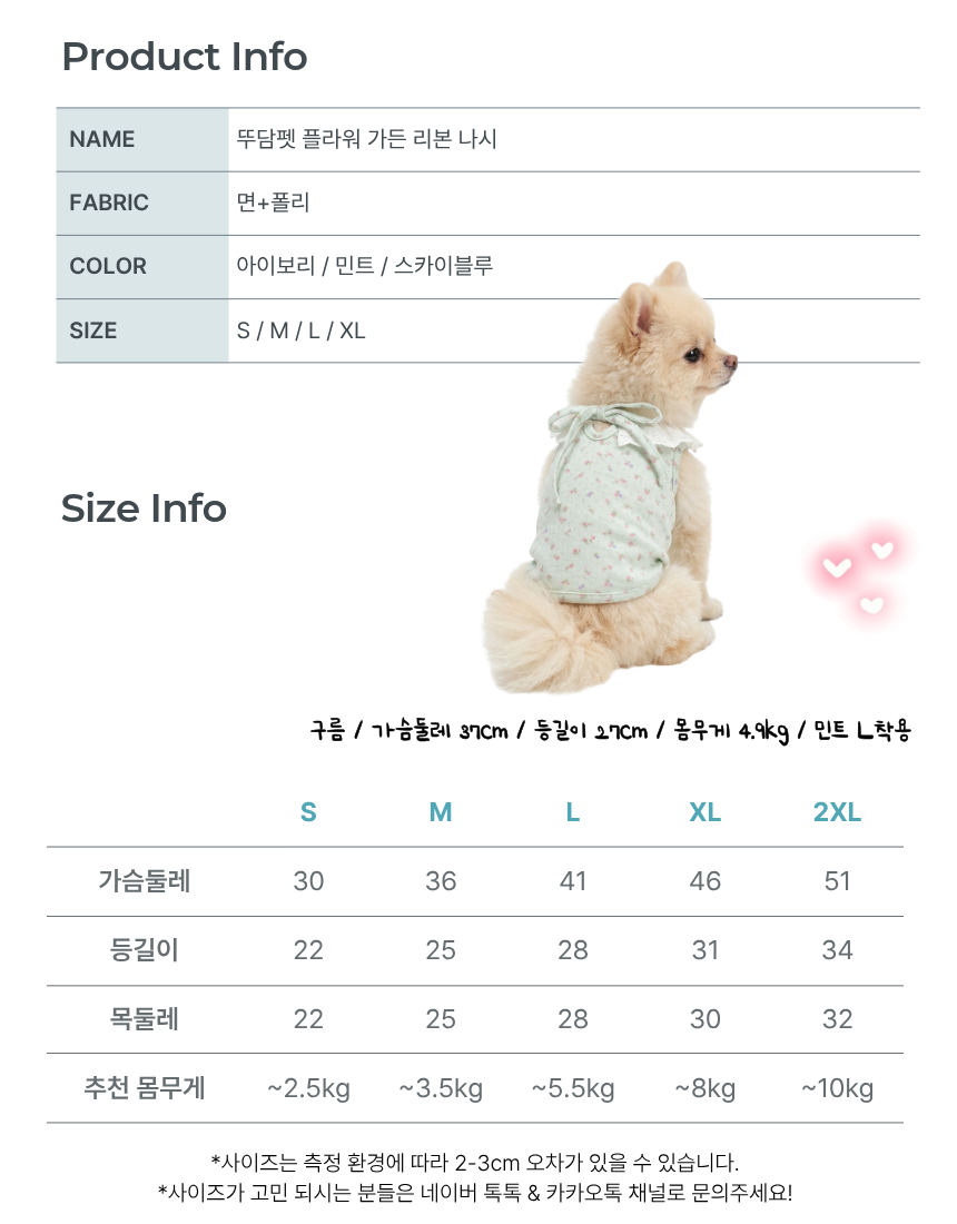 뚜담펫 플라워 가든 리본 나시 S-XL