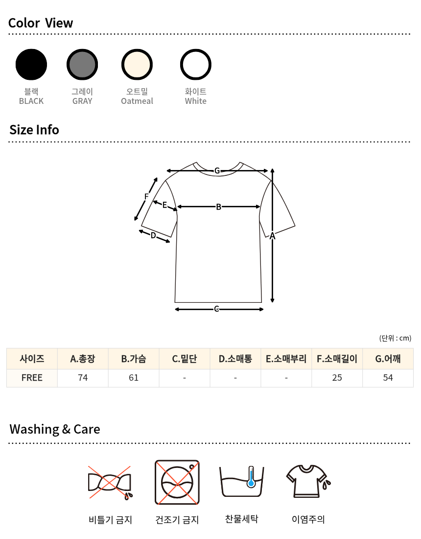 - 단순 변심의 경우 수령일로부터 7일 이내까지 교환∙반품이 가능합니다. (교환/반품비 고객님 부담)